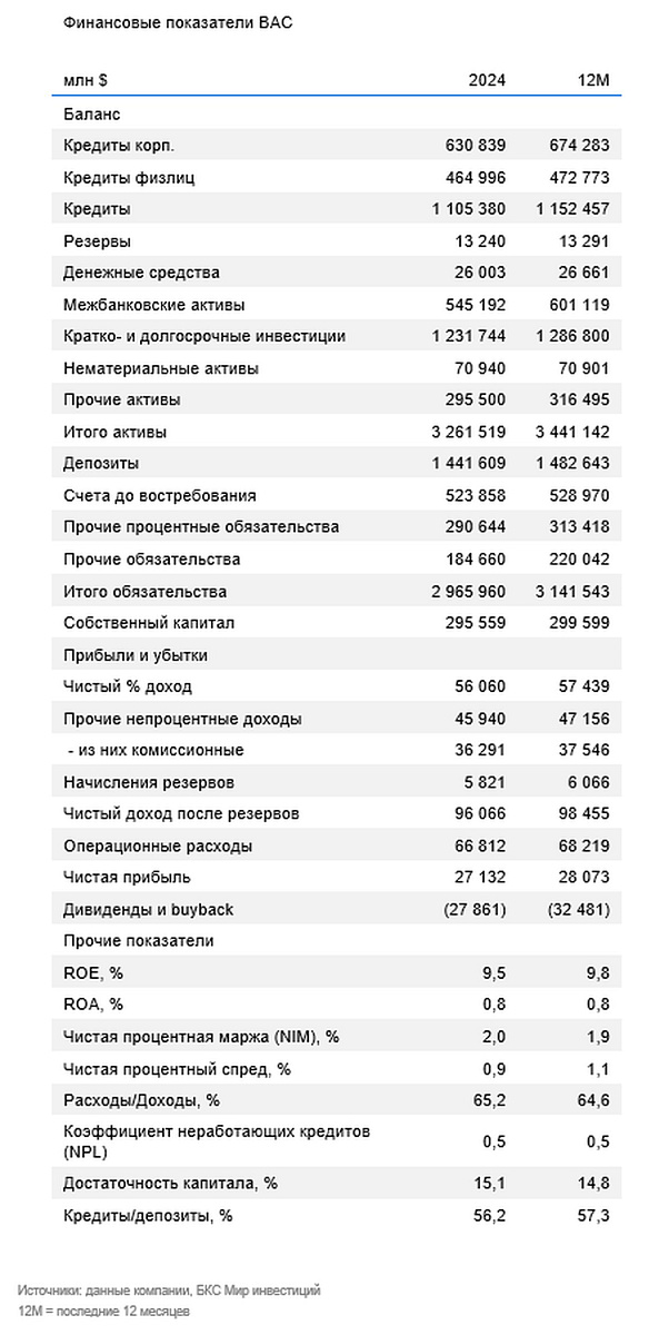Банк обладает здоровым балансом с коэффициентом достаточности по метрике CET1 = 11,8% при обязательном нормативе для банка 10,7%. Это позволяет рассчитывать на сохранение значительного возврата акционерам: около 75-80% через выкуп акций и дивидендные выплаты.