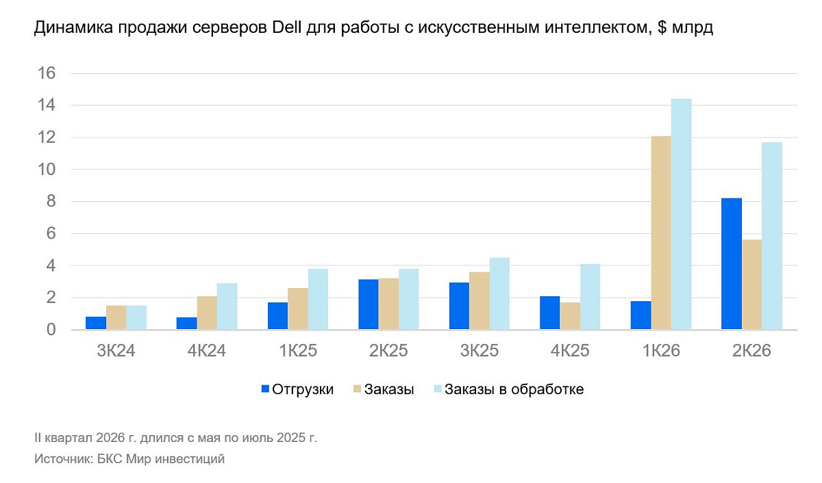 Основным катализатором для продаж Dell служит сегмент серверов и сетевых технологий. Все больше клиентов вкладываются в инфраструктурные решения с ИИ.