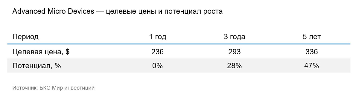 Сделка с OpenAI подтверждает наш тезис, что крупные технологические компании заинтересованы в диверсификации поставщиков вычислительных мощностей. Это ставит AMD в выигрышное положение, поскольку компания держит фокус не только на соотношении цены и качества чипов, но и на эффективности эксплуатационных затрат в пересчете на доллар США. Сделка должна помочь AMD значительно нарастить долю рынка в среднесрочной перспективе.