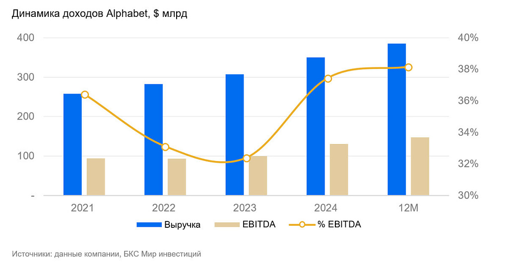 Достижения в области ИИ уже конвертируются в ускорение бизнеса. Google Cloud наращивает обороты благодаря спросу на TPU и корпоративные модели Gemini. А партнерства с Anthropic, Meta (признана экстремистской и запрещена в России) и OpenAI усиливают позиционирование платформы как одного из ключевых провайдеров ИИ-инфраструктуры. Успехи Gemini 2.5 и ожидаемый релиз Gemini 3 расширяют технологическую дифференциацию и поддерживают поисковый бизнес и монетизацию YouTube и Cloud.