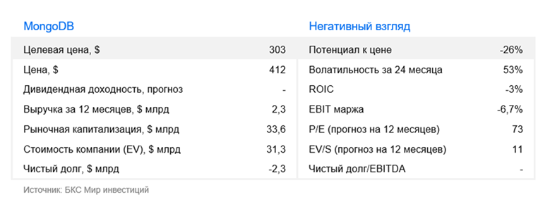 С точки зрения текущей оценки, акции торгуются с мультипликатором EV/S 11х (премия в 20% к 2-летним средним). Направление noSQL выглядит перспективным с учетом активного внедрения генеративного ИИ в работу компаниями, однако растущая конкуренция со стороны крупных компаний, может усложнить процесс экспансии бизнеса. С учетом сильных результатов за III квартал и повышения ориентиров менеджмента повышаем целевую цену с $280 до $303, но сохраняем «Негативный» взгляд.