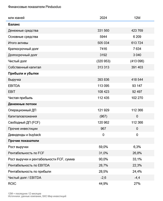 Так, даже на фоне преодоления трудностей (корректировки бизнес-модели Temu и рефокусировки географии) компания демонстрирует устойчивую прибыльность и накапливает наличные средства на балансе, которые за полгода с окончания I квартала выросли на $10 млрд. (с 50 до 60) при капитализации $155,5 млрд, а стоимости предприятия менее $100 млрд.