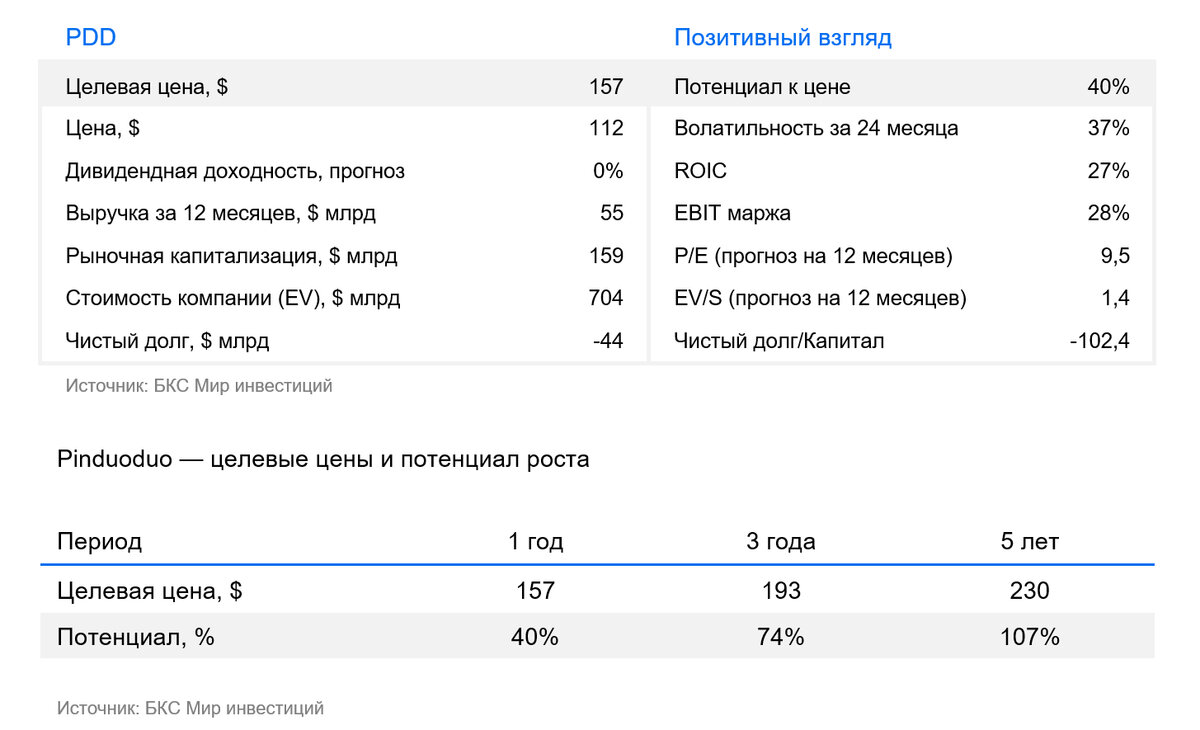 Мы считаем бумаги Pinduoduo недооцененными. Текущая оценка по мультипликаторам EV/S, EV/EBITDA и P/E дешевле Alibaba, что не отражает потенциал дальнейшего опережающего структурного роста компании по мере преодоления тарифной асимметрии в условиях торговли.
