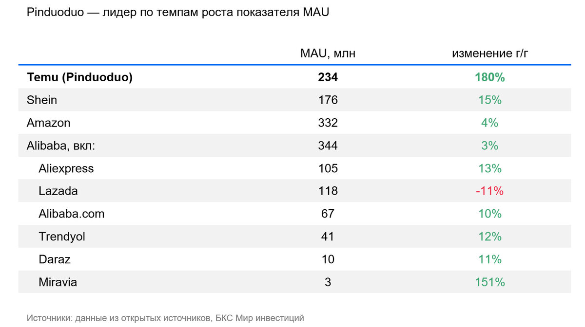 Так, в мае экспорт Китая в Европу прибавил 13,7% в годовом исчислении по сравнению с ростом на 9,3% в апреле. Динамика на уровне 10% годового прироста сохранялась и в III квартале. При этом у Temu более чем в два раза больше активных пользователей в месяц (MAU) в Европе по сравнению с Shein и Amazon и на 14% больше, чем у платформ Alibaba.