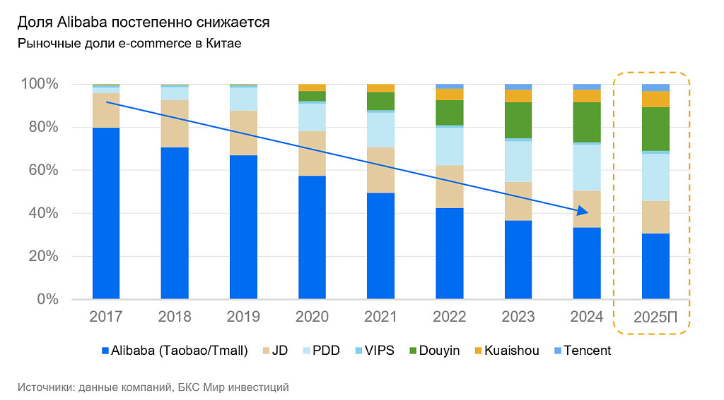 - Alibaba лидирует на рынке и демонстрирует высокую маржинальность.