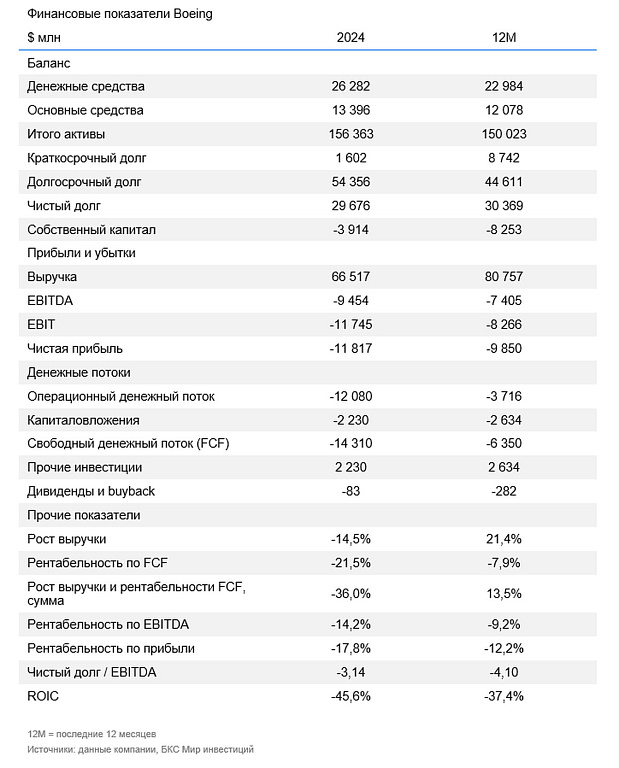 У Boeing на протяжении последних лет сохранялся отрицательный собственный капитал, что указывает на превышение обязательств над активами. Начиная с 2020 г., после масштабного кризиса, вызванного пандемией и проблемами с моделью 737 MAX, собственный капитал стал отрицательным и по итогам III квартала составил (- $8,3 млрд).