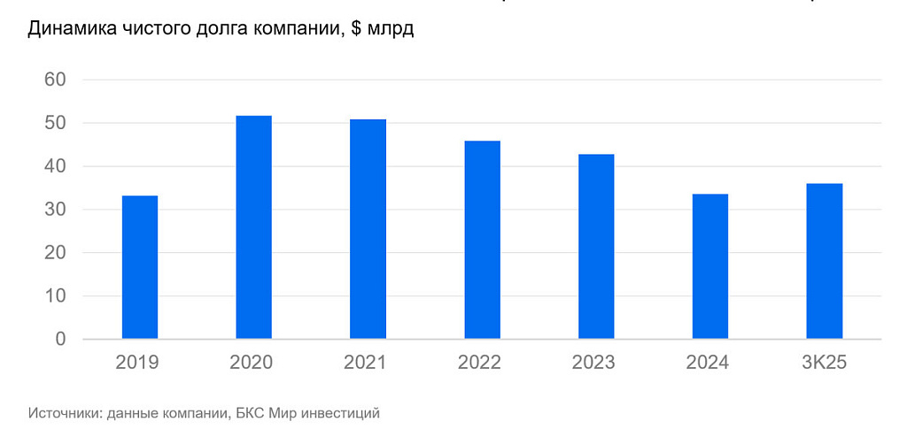 Долговая нагрузка завышена. У Boeing по-прежнему сохраняется высокая долговая нагрузка, что остается одной из ключевых финансовых проблем. Общий долг по итогам III квартала 2025 г. составляет около $53 млрд, а чистый (за вычетом денежных средств) — около $30,4 млрд. Значительная их часть была накоплена в период пандемии, когда компания столкнулась с резким снижением поставок и производственной активностью.