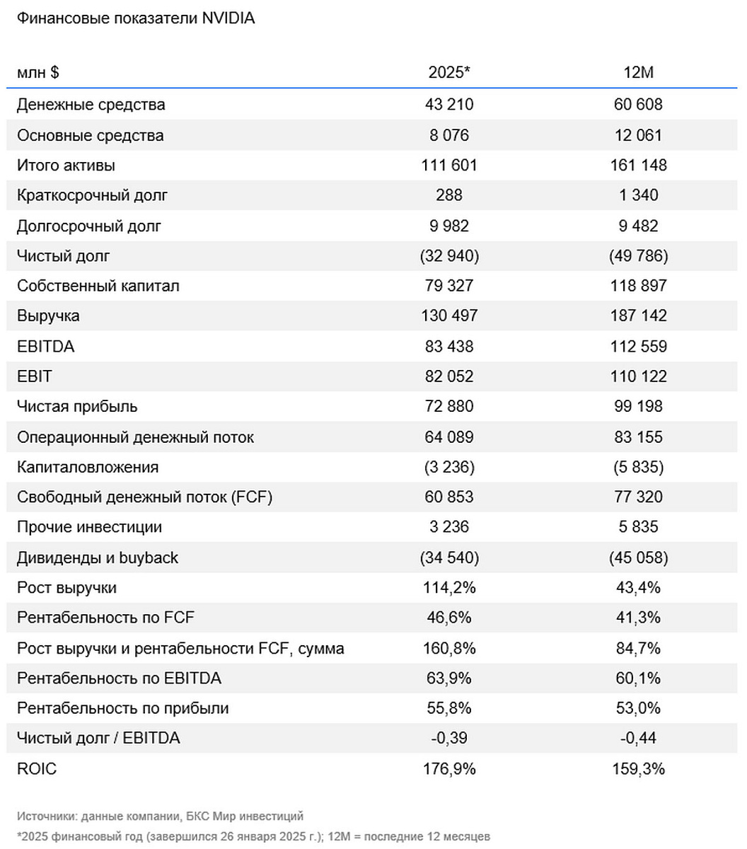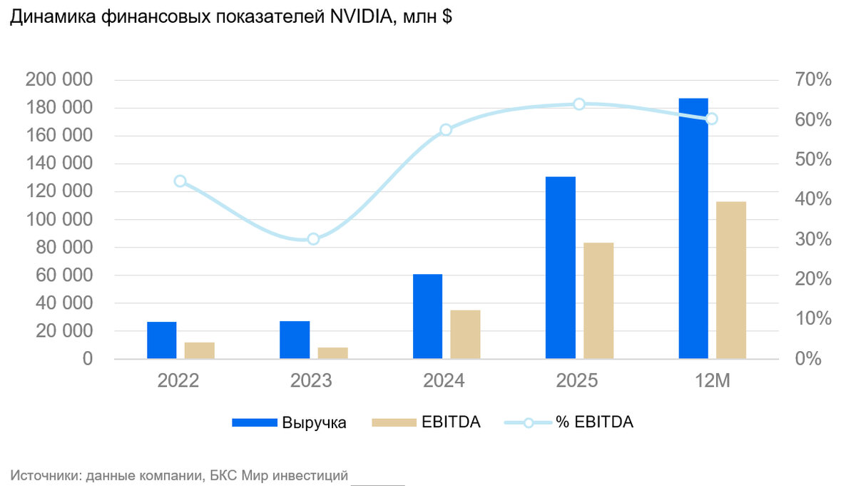 Мы отмечаем, что темпы роста капрасходов ключевых клиентов снижаются, накопленные ими за долгие годы на балансе денежные средства иссякают и начинает расти долговая нагрузка. Так, ряду компаний уже пришлось обратиться к заимствованиям на долговом рынке, чтобы профинансировать вложения в вычислительные мощности (долговая нагрузка Oracle начала беспокоить инвесторов). Это важный фактор, несмотря на заявления менеджмента NVIDIA о 500 млрд перспективных поставок Blackwell, включающих ключевых клиентов и новые заказы от Anthropic и новых покупателей в Саудовской Аравии.