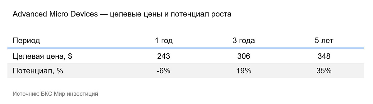 Сделка с OpenAI подтверждает наш тезис, что крупные технологические компании заинтересованы в диверсификации поставщиков вычислительных мощностей. Это ставит AMD в выигрышное положение, поскольку компания держит фокус не только на соотношении цены и качества чипов, но и на эффективности эксплуатационных затрат в пересчете на доллар США. Сделка должна помочь AMD значительно нарастить долю рынка в среднесрочной перспективе.