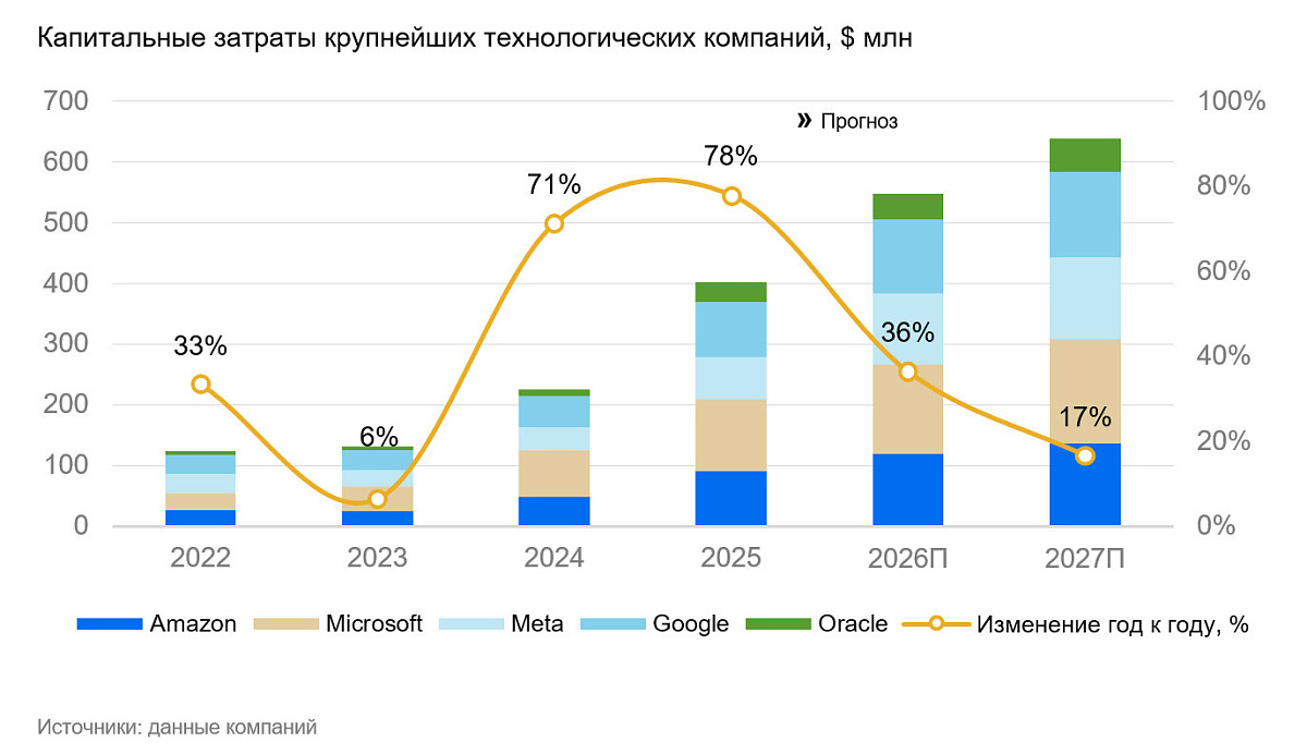 Тем не менее отмечаем влияние общих рисков для сектора. Они связаны с замедлением роста вложений у крупнейших облачных провайдеров в вычислительные мощности для ИИ. Кроме того, растет скепсис рынка, который теперь смотрит на подтверждение монетизации ИИ для конечного спроса.