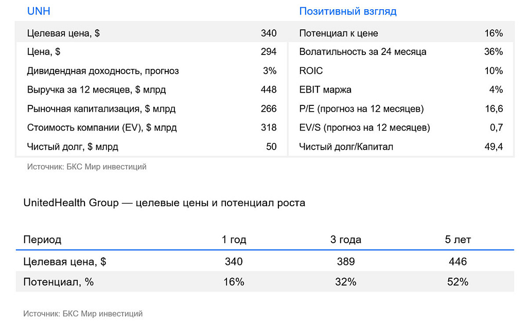 UnitedHealth сочетает масштабный страховой бизнес UnitedHealthcare и вертикально интегрированные медицинские сервисы Optum (Health, Rx, Insight).