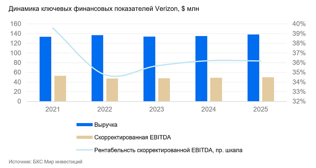 Выручка за квартал составила $36,4 млрд, что выше консенсуса ($36,1 млрд). Показатель вырос в основном за счет увеличения абонентской базы и более активных коммерческих акций, включая семейные планы, а также расширения фиксированной беспроводной и оптоволоконной сети после интеграции Frontier. Скорректированная прибыль на акцию достигла $1,09 и тоже превысила прогнозы ($1,06).