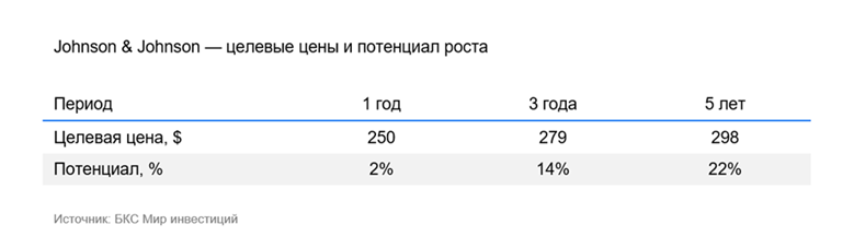 - Сохраняем «Нейтральный» взгляд на акции Johnson & Johnson с целевой ценой $250 на горизонте 12 месяцев.