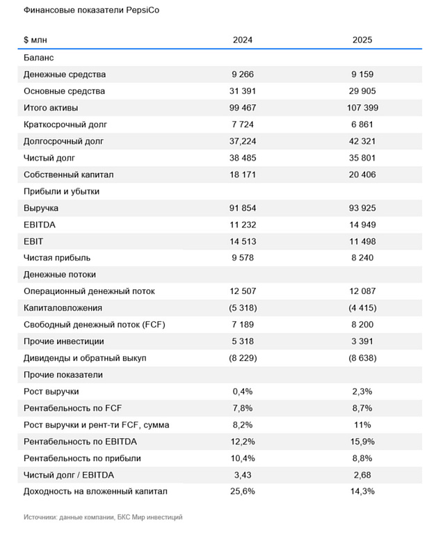 В 2026 менеджмент PepsiCo прогнозирует умеренный органический рост выручки +2–4% и скорректированной прибыли на акцию (EPS) +4–6%, с улучшением динамики во второй половине года. Также менеджмент повысил годовые дивиденды на 4% с $5,61 до $5,92 и анонсировал новый выкуп акций на $10 млрд до 2030 года.