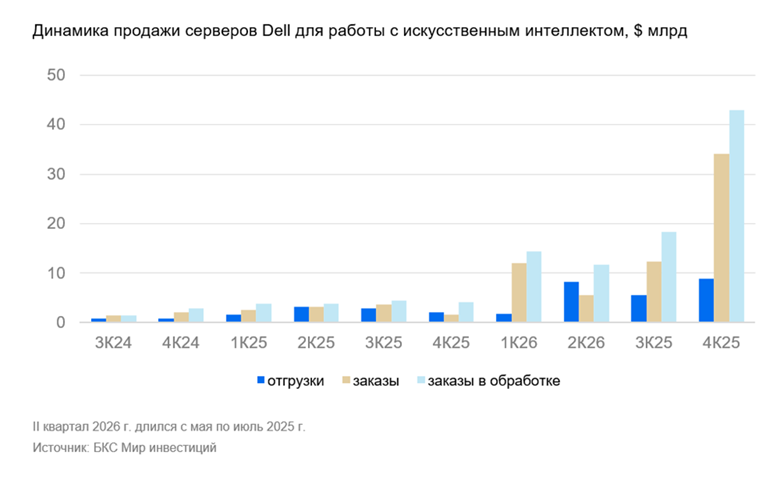 Основным катализатором для продаж Dell служит сегмент серверов и сетевых технологий. Все больше клиентов вкладываются в инфраструктурные решения с ИИ.