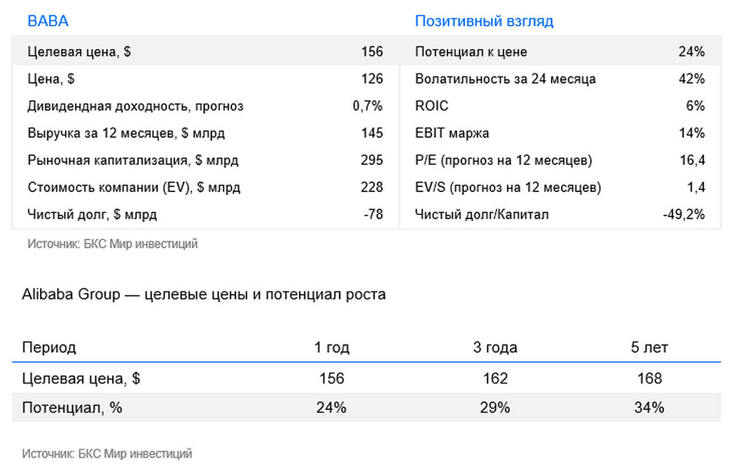 После коррекции бумаги на относительно слабой отчетности (Alibaba показала снижение прибыльности), мы отмечаем привлекательную оценку. Наиболее наглядно она прослеживается по мультипликатору EV/S (стоимость компании к ее выручке) на уровне 1,3-1,4x. Во-первых, средний показатель за последние 5 лет был на уровне 1,6x, а во-вторых, в отличии от этого периода, компания инвестирует в опережающее развитие в двух сегментах — облачном и сверхбыстрой доставки, что должно оправдывать более высокий целевой мультипликатор EV/S, чем за последние 5 лет. В этот период компания в основном защищала рыночную долю, а заметную часть генерируемого денежного потока возвращала акционерам.