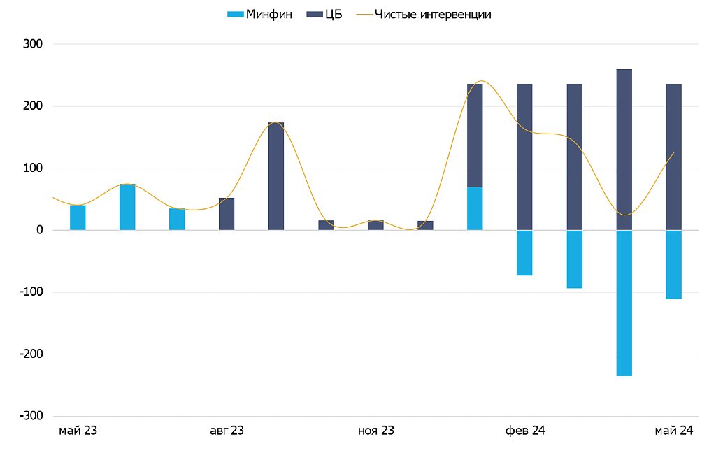 Иена немного вернула позиции за счет слабого доллара и сейчас торгуется вблизи JPY 156.1/$. При этом в течение недели сохранялась повышенная волатильность с периодами резкого укрепления. Поэтому мы не удивимся возврату к валютным интервенциям (данные по интервенциям станут доступны в конце следующего месяца). На этой неделе будем следить за оценкой расходов домохозяйств в апреле: восстановление потребительской активности может стать фактором укрепления иены.