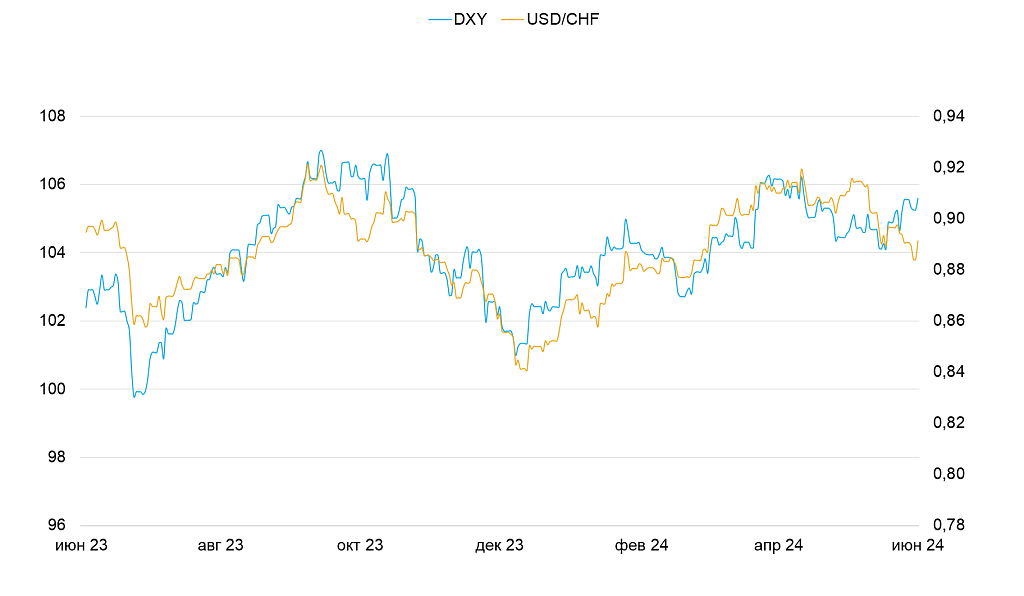 Динамика индекса DXY и пары USD/CHF