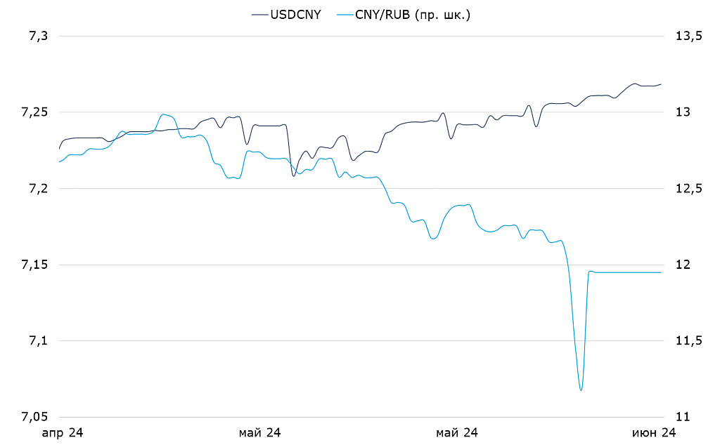 Динамика валютной пары USD/CNY и CNY/RUB