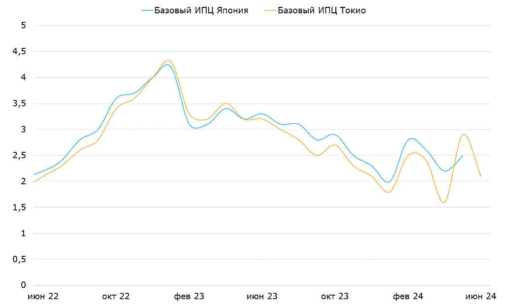 Базовая инфляция в Японии и Токио, %, г/г