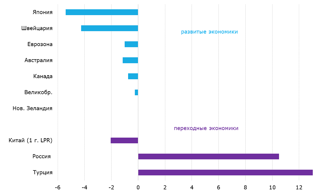 Целевая процентная ставка по сравнению со ставкой ФРС (5.5%), п. п