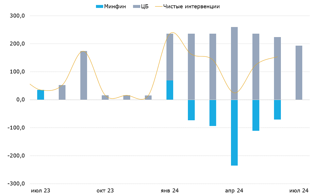 Чистые продажи валюты Минфином и ЦБ