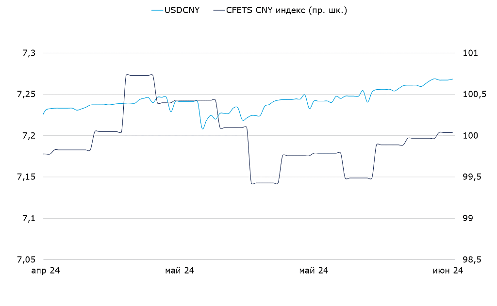 Курс юаня к доллару США и корзине валют