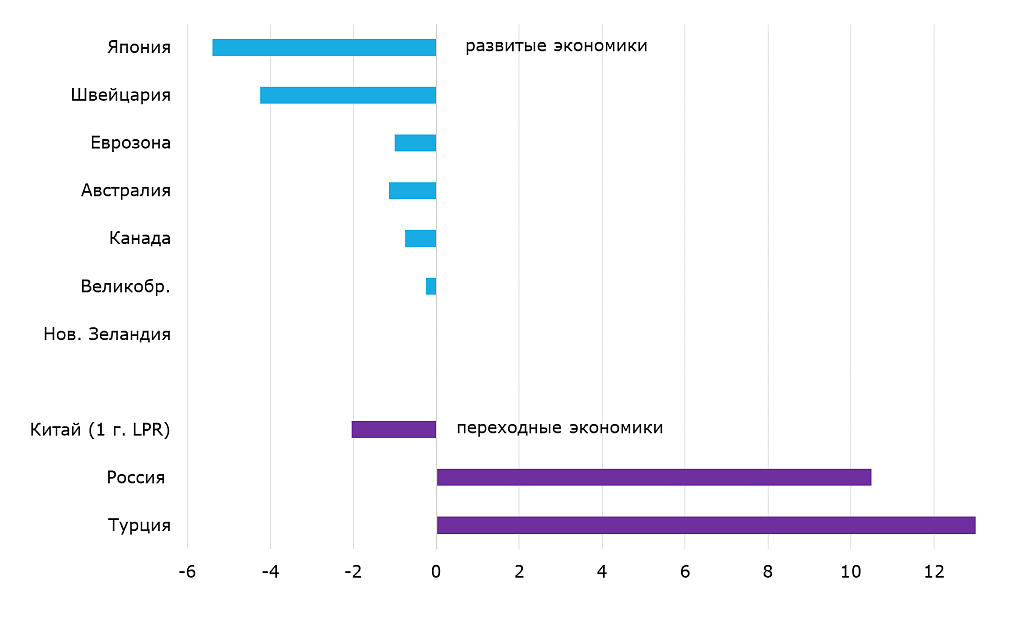 Целевая процентная ставка по сравнению со ставкой ФРС (5.5%), п. п.