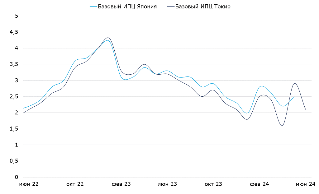 Базовая инфляция в Японии и Токио, %, г/г