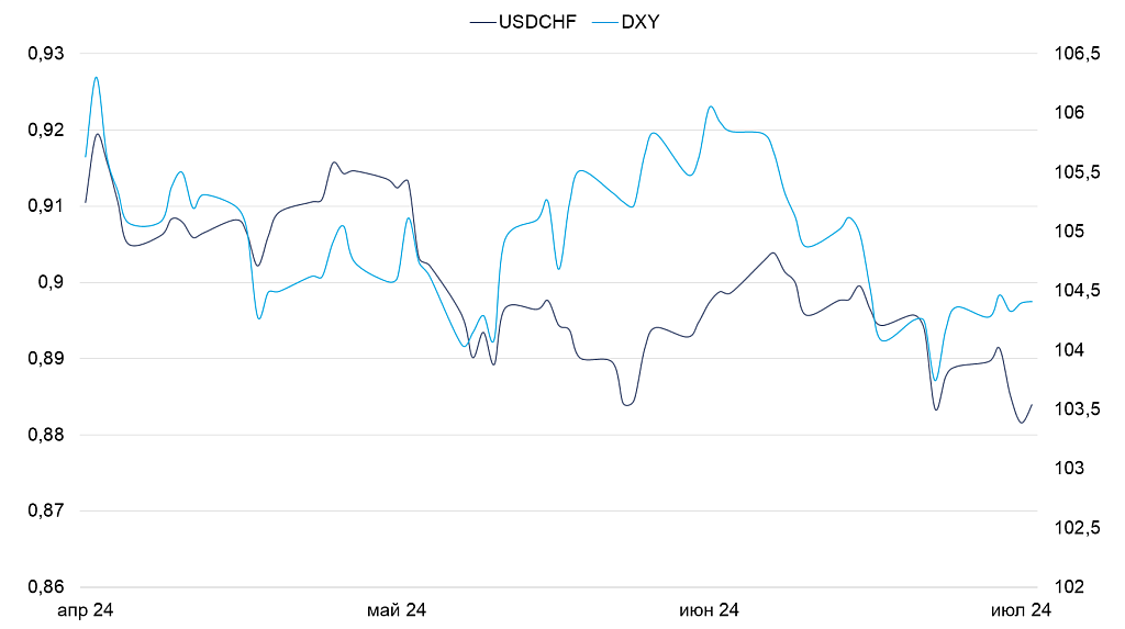 Динамика Швейцарского франка и индекса DXY