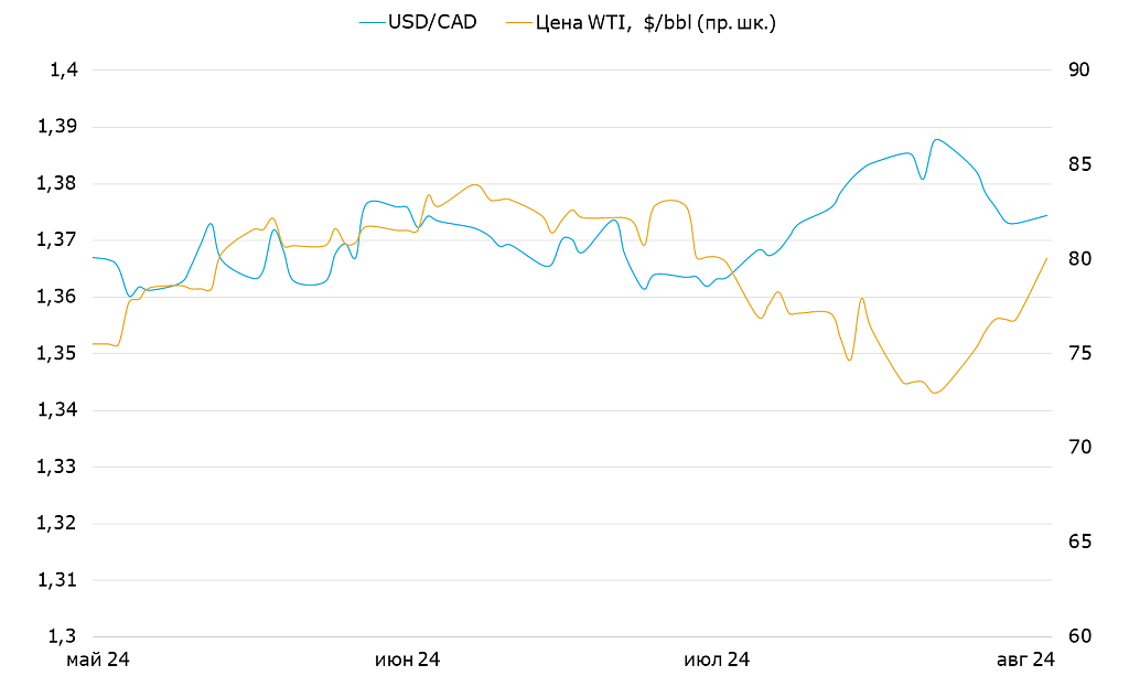 Рост мировых цен на нефть поддержал торговый баланс Канады в июне, а с учетом сохраняющейся геополитической напряженности мы ожидаем новых позитивных принтов в июле и августе. Это формирует долгосрочные факторы поддержки канадского доллара, особенно в случае сохранении мягкой риторики ФРС США. Вероятно, что Банк Канады будет менее активно смягчать свою монетарную политику до конца года, нежели ФРС – статистика по рынку труда на прошлой неделе оказалась лучше ожиданий рынка за счет сохранения безработицы на уровне 6.4%.