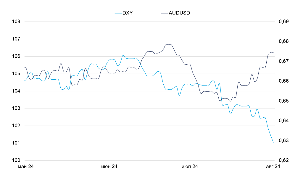 Фунт, как и евро, укрепился на фоне коррекции доллара до уровня $1.31. В случае с фунтом укрепление опережает темпы снижения индекса DXY, пусть и минимально. Английская валюта получает дополнительную поддержку из-за сохраняющейся неопределенности относительно будущего решения по ставке. В пятницу, 23 августа, глава Банка Англии выступит на симпозиуме в Джексон-Хоул и, возможно, более четко обозначит будущее направление денежно-кредитной политики. Мы видим предпосылки для небольшой коррекции фунта до 1.29-1.30: председатель Банка Англии Бейли склоняется в сторону более мягкой политики.