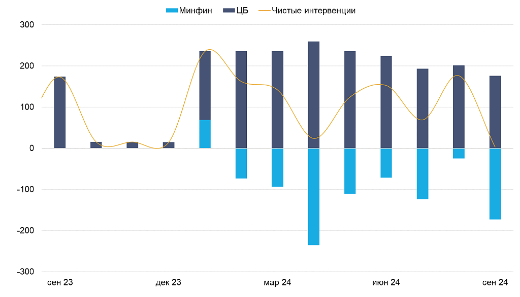 Минфин объявил о резком увеличении покупок валюты на рынке в сентябре из-за высоких нефтегазовых доходов в августе. Суточные покупки Минфина составят RUB 8.2 млрд, а продажи ЦБ — RUB 8.4 млрд. Минфин будет выкупать интервенции ЦБ практически полностью. Это вызовет давление на курс рубля до конца месяца, когда экспортеры начнут продавать валюту для выплаты квартальных налогов.