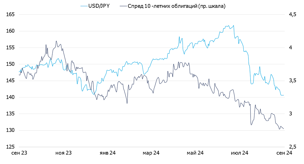 Иена укреплялась скорее под влиянием изменения спреда между доходностями облигаций в Японии и США.