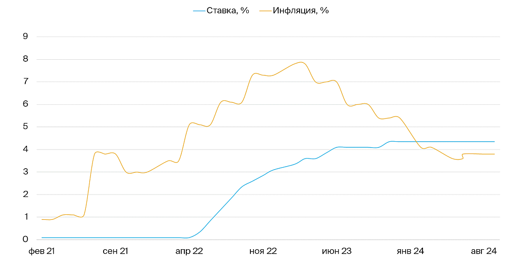 Ситуация с деловой активностью в Британии лучше, чем в еврозоне, однако динамика схожа. Индекс PMI в сфере услуг упал до 52.9 против 53.7 в прошлом месяце, а в производственном секторе – до 51.5 против 52.5 в августе. При этом индексы деловой активности все еще находятся в зоне экономического роста, а инфляционное давление снижается, что говорит о возможной «мягкой посадке» экономики Великобритании после цикла роста ставок.