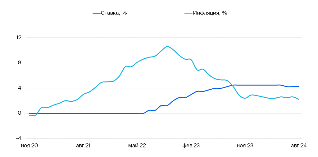 Динамика инфляции и процентной ставки в Новой Зеландии