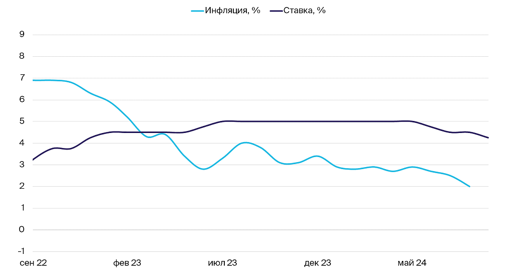 Динамика ставки и инфляции в Канаде