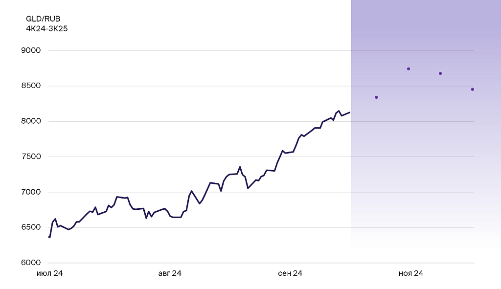 - GLD против RUB: потенциал роста на 4% на 12 месяцев