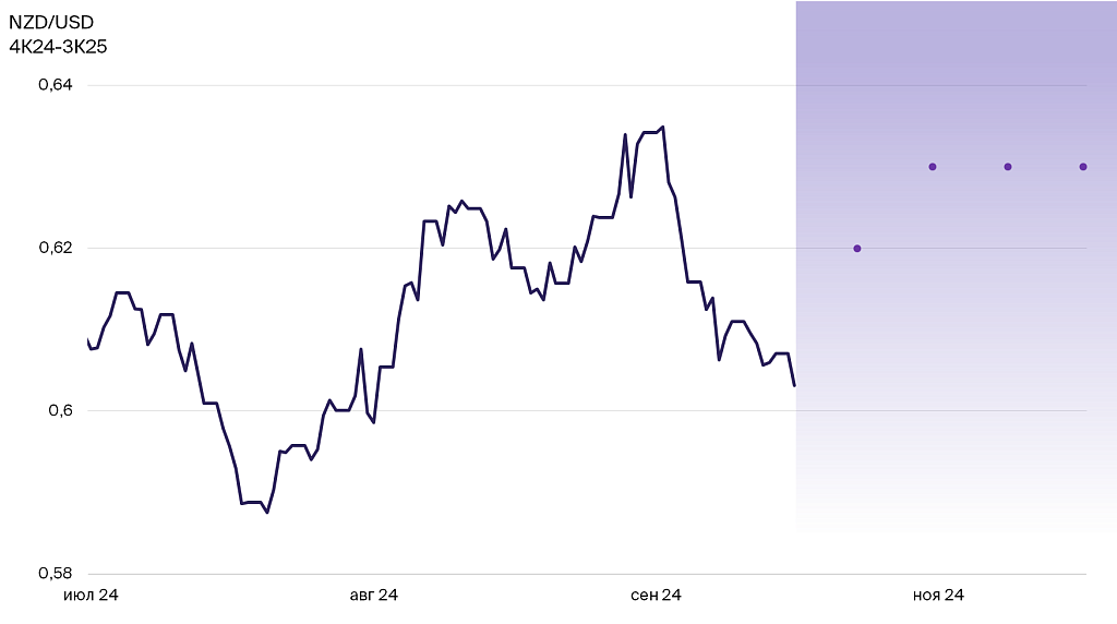 Ожидания по курсу NZD/USD на 4 квартала