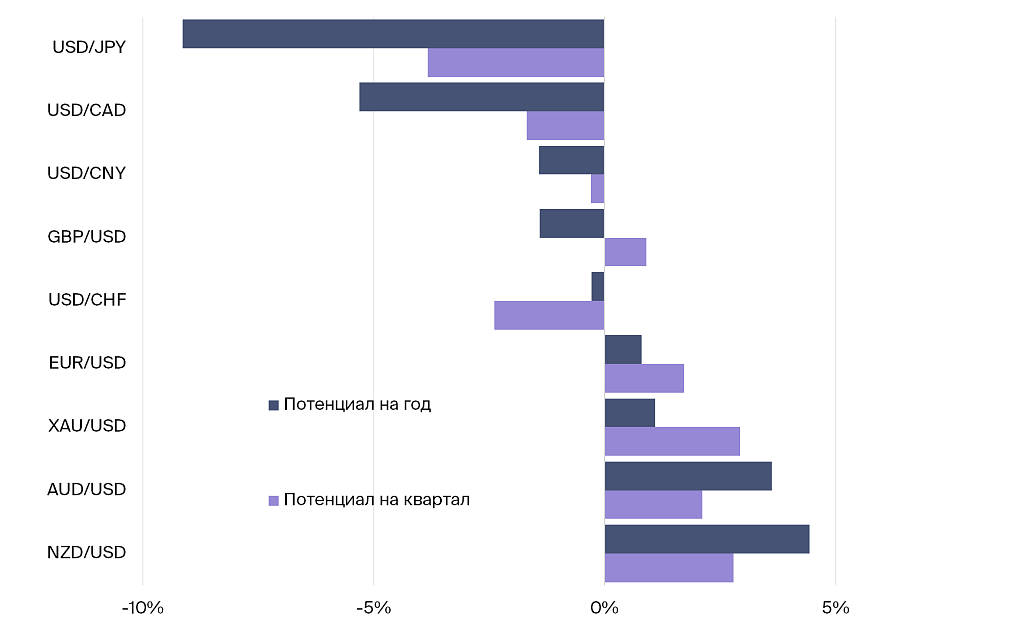 Долларовые пары: потенциал изменения на квартал и год