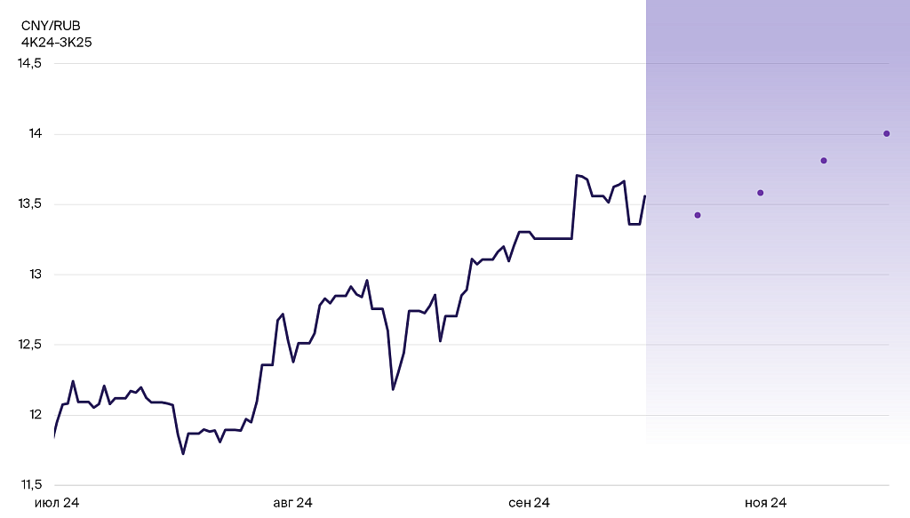 Ожидания по курсу CNY/RUB на 4 квартала