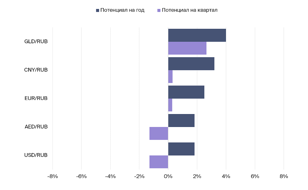 Рублевые пары: потенциал изменения на квартал и год