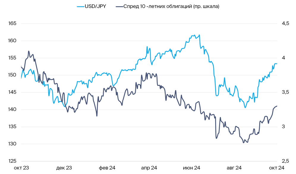Предвыборная гонка в США ведет доллар вверх, и другие валюты слабеют против американца. Разворота в этой тенденции мы не ожидаем до выборов 5 ноября. Также на иену давят итоги парламентских выборов в Японии, где растут риски валютных интервенций. Рубль продолжает ослабевать, несмотря на ужесточение ДКП.
