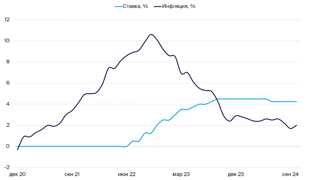 Динамика инфляции и процентной ставки в Еврозоне