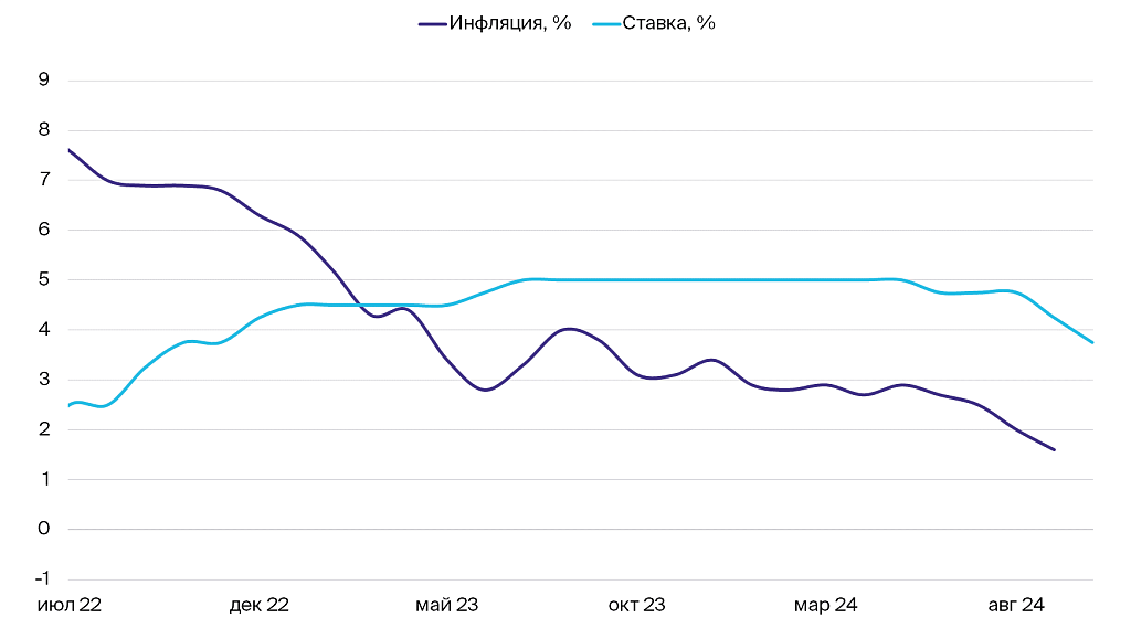 Динамика ставки и инфляции в Канаде