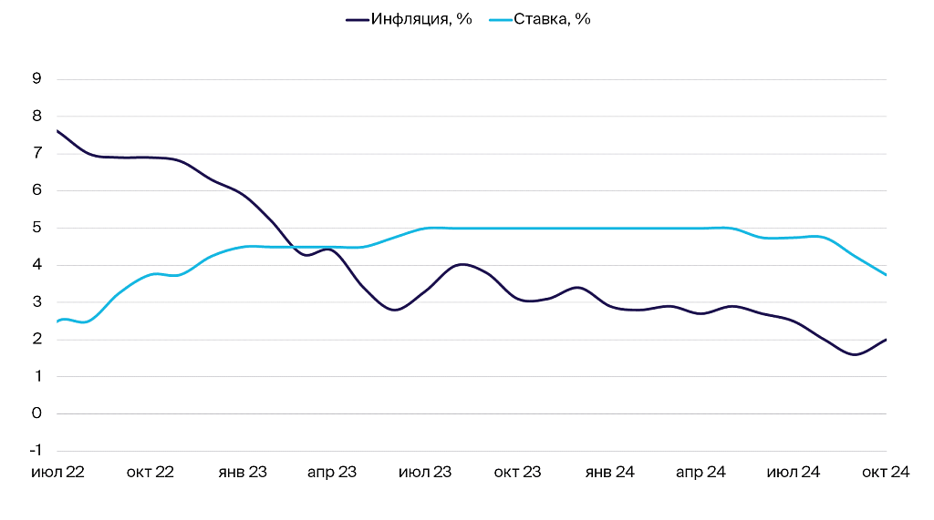 Динамика ставки и инфляции в Канаде