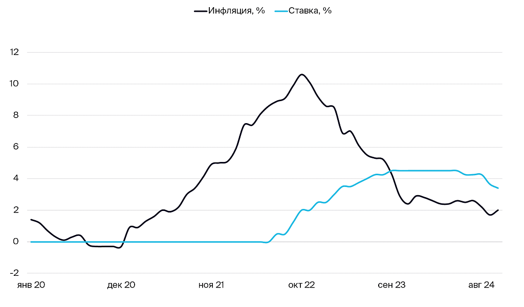 Динамика инфляции и процентной ставки в Великобритании
