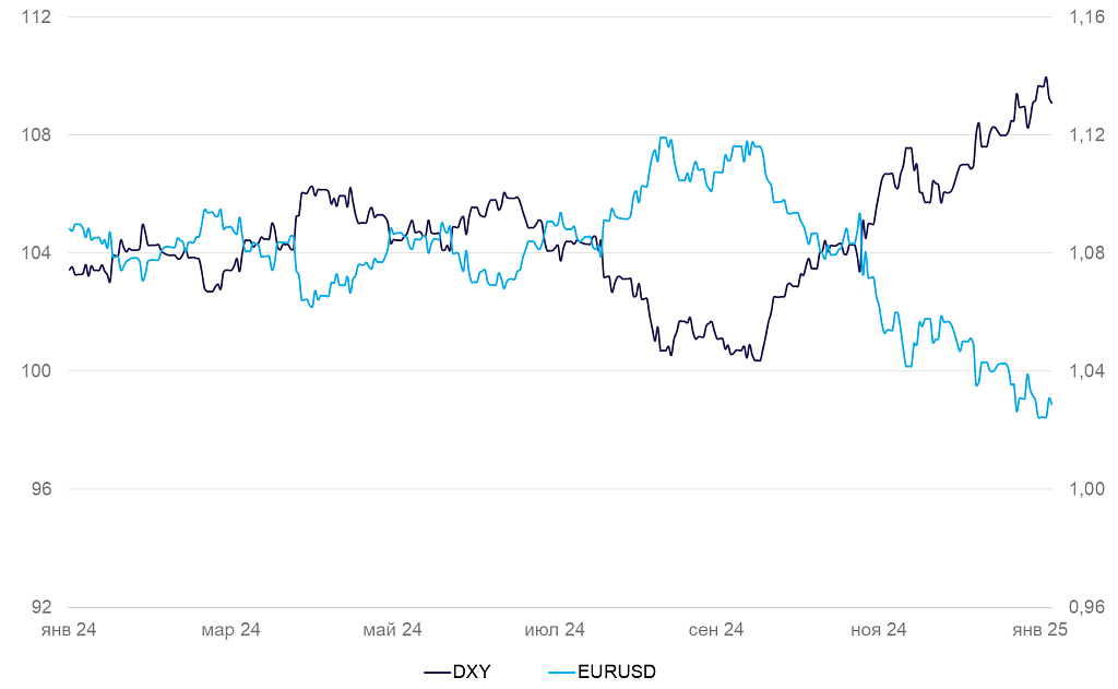 Динамика индекса DXY и валютной пары EUR/USD