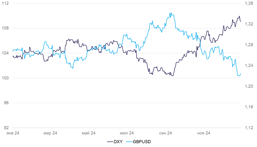 Динамика индекса доллара DXY и валютной пары GBP/USD