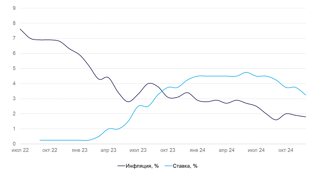 Динамика ставки и инфляции в Канаде